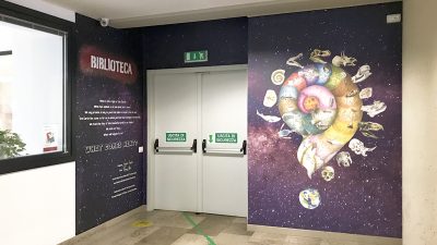 Decorazione con Tattoowall di una parete d’ingresso presso la Facoltà di Geoscienze dell’Università di Padova.