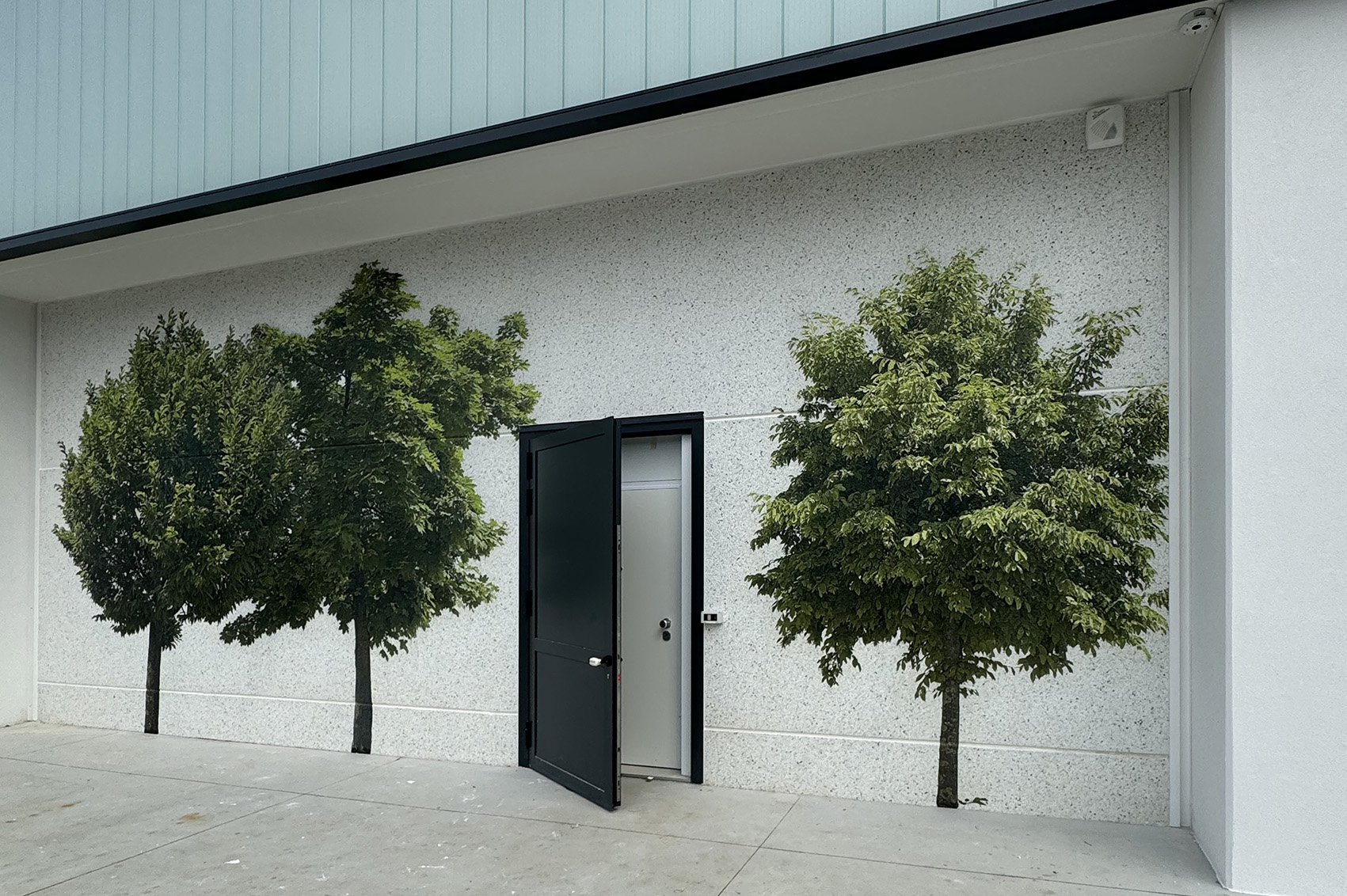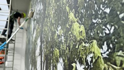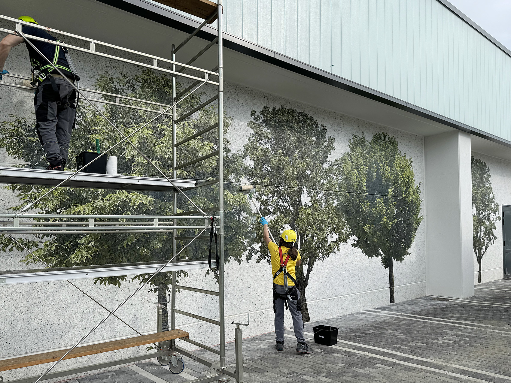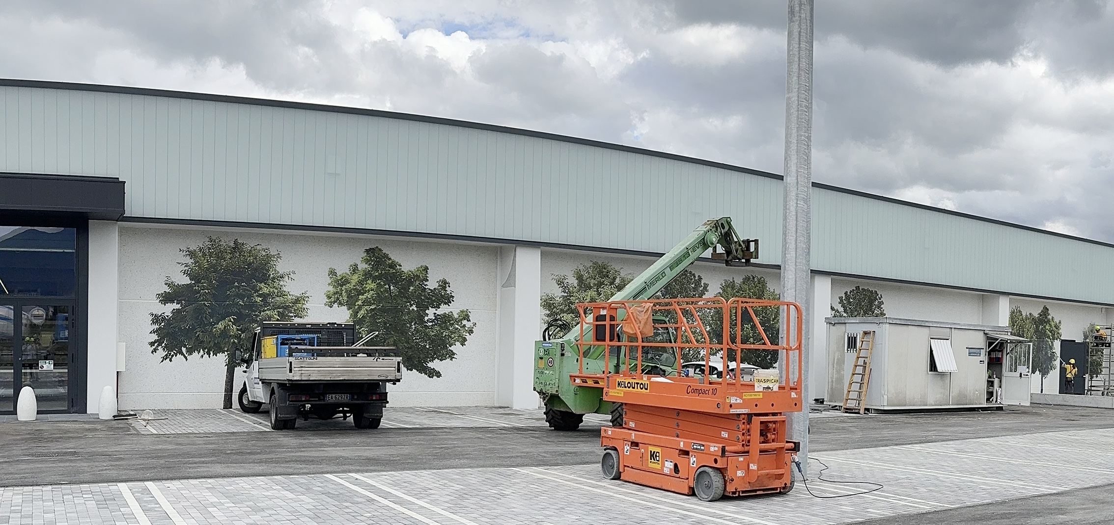 Decorazione muri esterni di un supermercato con tecnica Tattoowall.