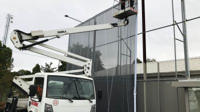Realizzazione progetto grafico ed installazione di teli microforati a copertura della facciata dell’edificio industriale Soluzione Mipa.